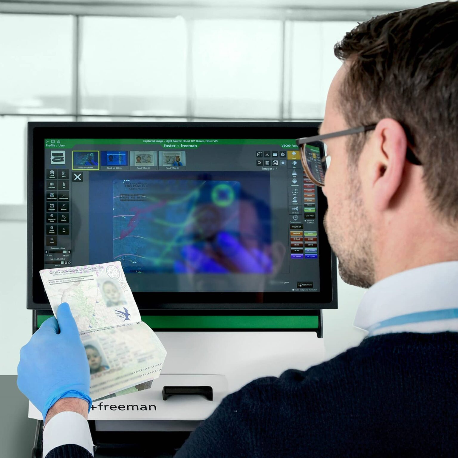 VSC90 delivers comprehensive multi-spectral illumination and imaging tools to inspect all physical elements of a document for signs of counterfeiting or tampering. Examine traditional and advanced security features with confidence, including pen and ink strokes, paper composition, cover construction, laminates, photographs, and stitching.